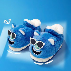 可爱大眼仔高邦棉靴冬季加绒保暖室内家居厚底防滑情侣棉拖鞋厚底