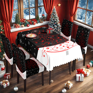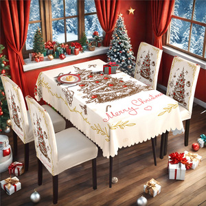 数码印花复古圣诞树桌布圣诞家居节日装饰台布防尘防水餐桌布跨境