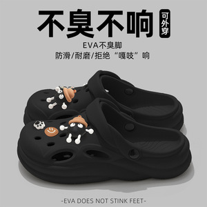 踩屎感洞洞鞋男款夏季外穿PVC2025新款沙滩防滑耐磨户外开车凉拖