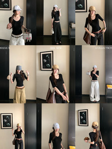 Skk Store 新澳美利奴仿羊毛~中袖U领/圆领针织打底衫