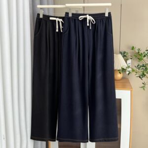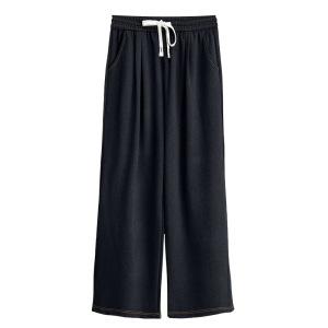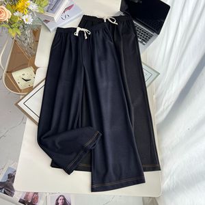 200斤胖MM早秋新款简约百搭抽绳松紧腰直筒裤大码女休闲长裤7901
