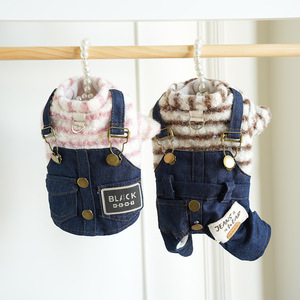 棒棒糖宠物衣服狗狗牛仔背带裤秋冬新款泰迪贵宾博美小狗服饰两脚