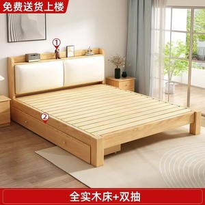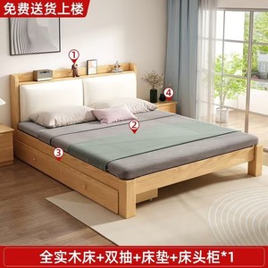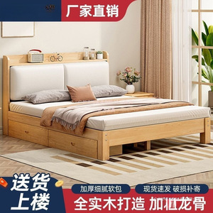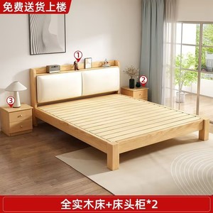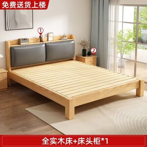 实木床现代简约全实木1.2米1.5米单人床家用双人床小户型出租房床