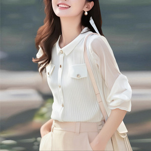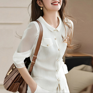 小香风白色针织开衫女2025年秋装新款设计感宽松显瘦衬衫气质上衣