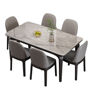 高端实木微晶石餐桌椅套装现代简约家用小户型长方形西餐桌包安装