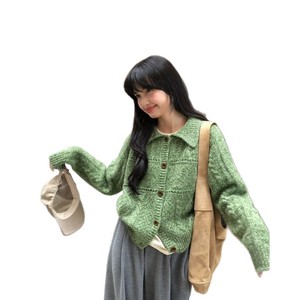 复古风毛衣女韩系百搭宽松2025早秋新款外套麻花翻领混纺针织开衫