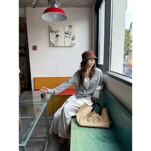 灰色假两件v领防晒罩衫长袖t恤女夏季薄款慵懒松弛感显瘦上衣体恤