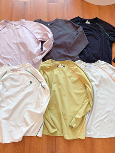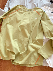 户外山系风 秋款男女同款宽松印花撞色拼接骑行运动休闲长袖T恤