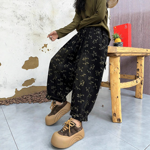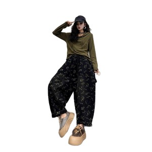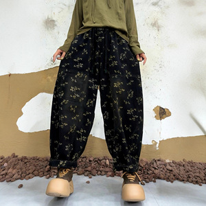 2025年秋款个性印花牛仔老爹裤女宽松紧腰大码显瘦萝卜裤子潮