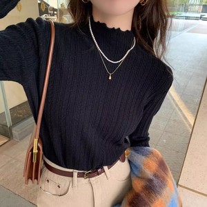白色毛衣女内搭2025早秋新款半高领木耳边针织衫宽松长袖套头上衣