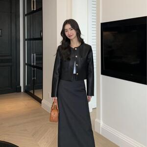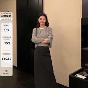 pusumede黑色高腰半身裙女高级感修身气质直筒开叉西装裙子包臀裙