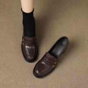 现货~复古真皮粗跟增高乐福鞋女2025新款英伦风小个子通勤小皮鞋