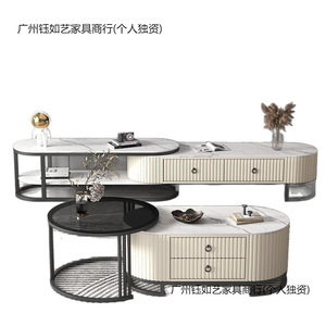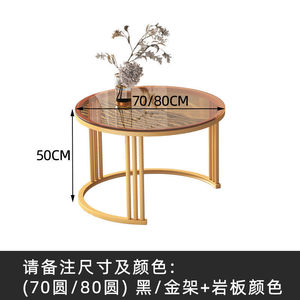 茶几2025新款小户型简约网红岩板圆形玻璃组合客厅家用实木茶台桌