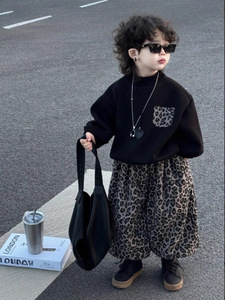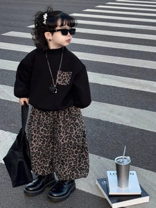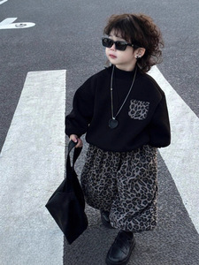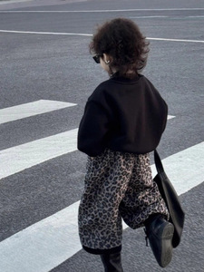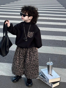 2025春秋季韩版男童痞帅时尚百搭复古豹纹套装儿童帅气上衣长裤