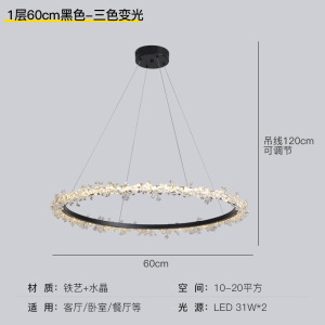 北欧轻奢水晶客厅灯现代简约餐厅灯复古创意卧室艺术圆环客厅吊灯