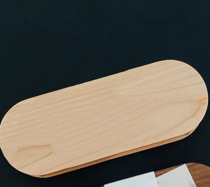 椭圆形原色榉木抽拉空木盒一只+四片减震垫纸 35.5*12.4*5.3cm内径26.5*10.5*