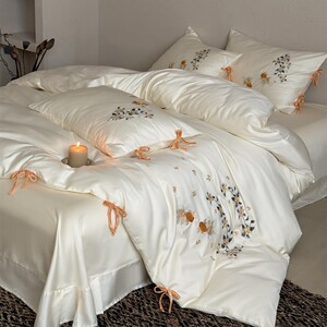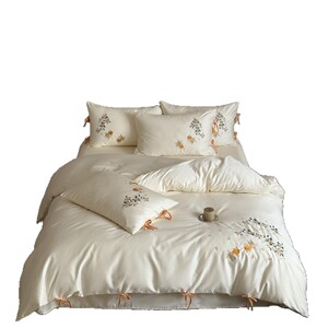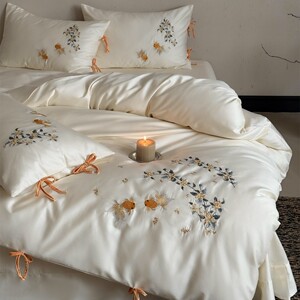 时尚现代风金桂锦鲤刺绣超柔亲肤寝具床品纯棉长绒棉四件套家纺
