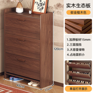 新中式超薄翻斗鞋柜家用门口2025新款爆款入户玄关一体实木色鞋架