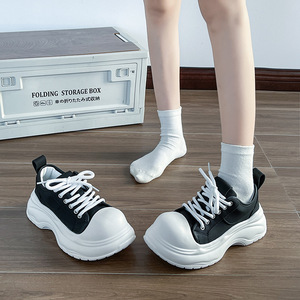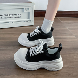 小个子丑萌大头面包休闲板鞋女2025春秋季新款厚底增高松糕小白鞋