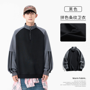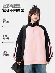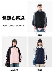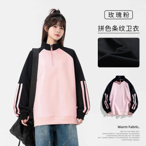 NASA美式立领半拉链卫衣男士春秋季2025新款宽松休闲条纹情侣外套