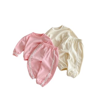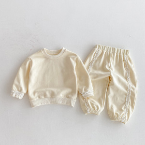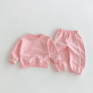 女童套装韩版秋季中小童1-8岁儿童时尚花边公主女宝束脚裤两件套