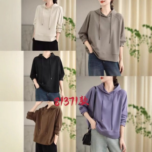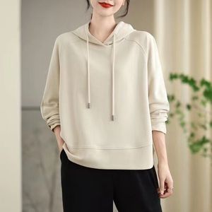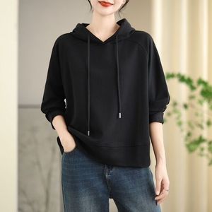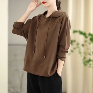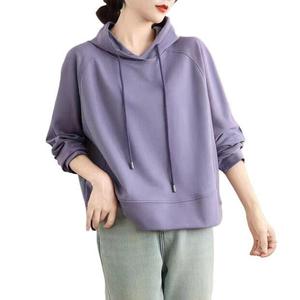 琪镌绘制连帽卫衣秋季新款慵懒简约上衣女装文艺宽松打底衫81371