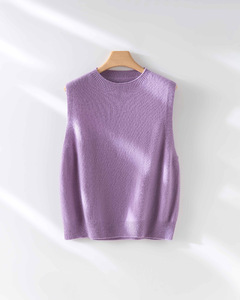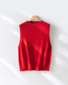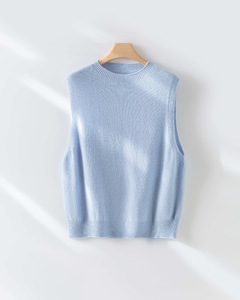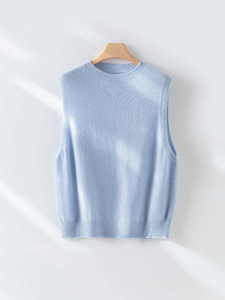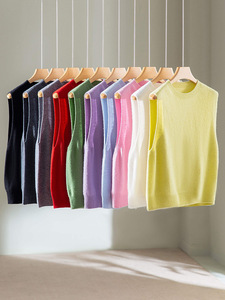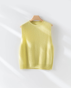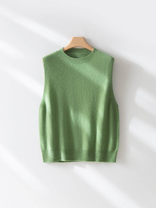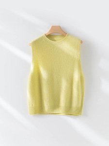 【澳洲100美丽诺羊毛】韩版奶黄圆领针织马甲秋简约无袖针织背心