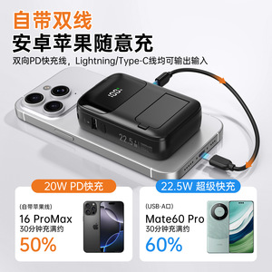 磁吸充电宝3c认证2万毫安实标22.5w快充大容量自带线移动电源快冲