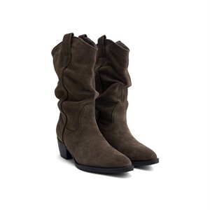 SGIRL TWTW时尚高跟短靴英伦厚底尖头显瘦复古褶皱堆堆靴骑士靴