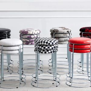 塑料圆凳子家用简约时尚高圆凳加厚钢筋凳套凳餐桌凳板凳