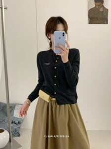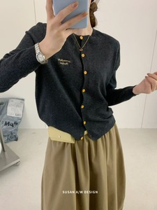 苏珊 韩系针织开衫2025早秋季新款字母刺绣羊毛外套毛衣女装26723