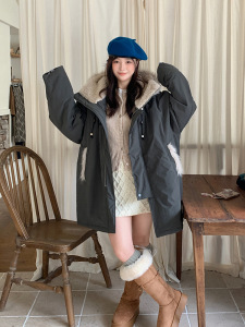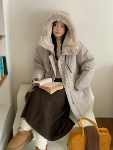 座山雕中长款棉服2025冬季新款韩版宽松百搭棉衣加绒棉袄外套潮