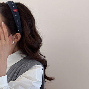 韩版高级红色字母爱心发箍高颅顶日常外戴发饰女波点时尚海绵发箍