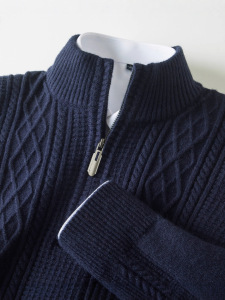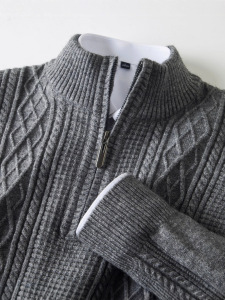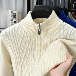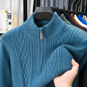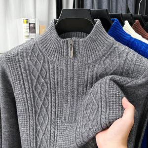 冬季中年570克濮院毛衣男保暖加厚拉链半高领男士打底衫针织衫男