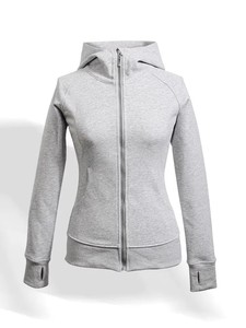 浅灰色修身卫衣外套女2025新款早秋季显瘦穿搭收腰正肩连帽瑜伽服
