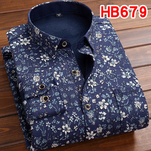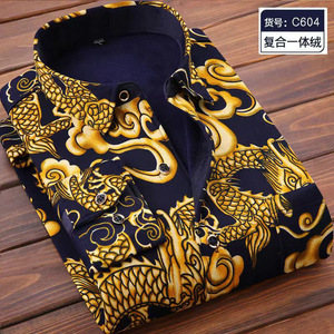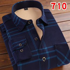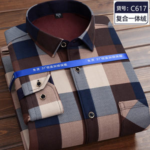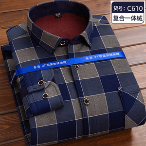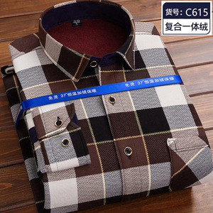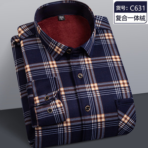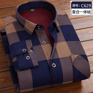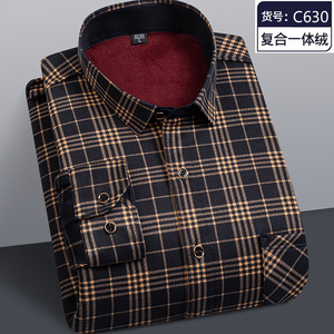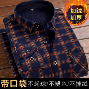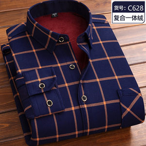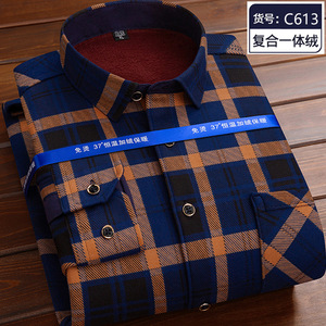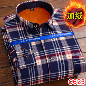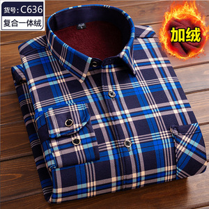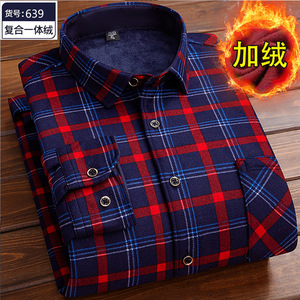 男士保暖衬衣加厚加绒冬季中老年格子衬衫男复古印花长袖休闲男装