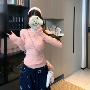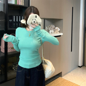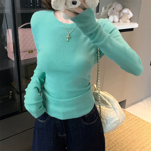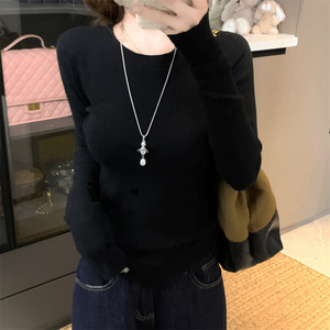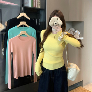 大码秋冬胖mm基础款针织打底衫简约圆领外穿套头内搭长袖上衣