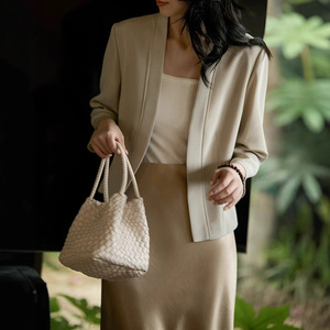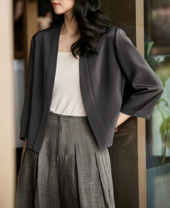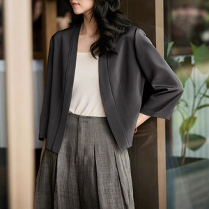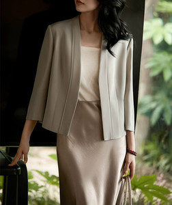 南油直播2025早秋篙品质26姆米桑蚕丝弹力重绉七分袖短西服外套女