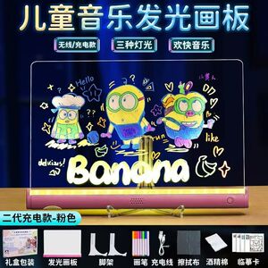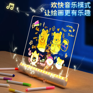 充电款儿童音乐发光画板手工diy可擦写透明亚克力绘画摆摊套装