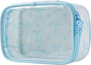 透明PVC蝴蝶结化妆包收纳袋双面双拉链防水旅行洗漱包便携式化妆