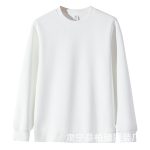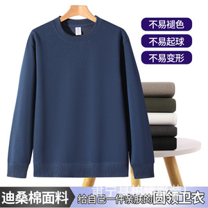 重磅圆领男卫衣现货320克迪桑棉纯色圆领宽松卫衣螺纹袖口卫衣