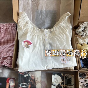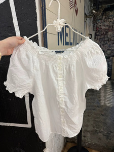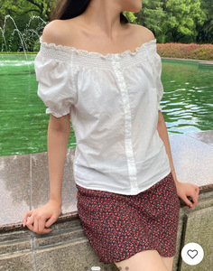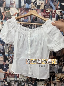 BM风 新款松紧花边泡泡袖短袖衬衫bm修身显瘦百搭花苞一字肩小衫
