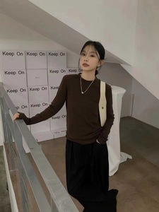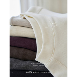 羊毛天丝加厚腈纶发热小立领极简百搭打底衫女秋冬保暖针织上衣