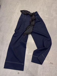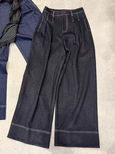 深蓝色阔腿裤2025新款秋季牛仔休闲裤