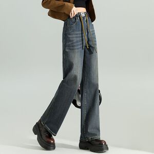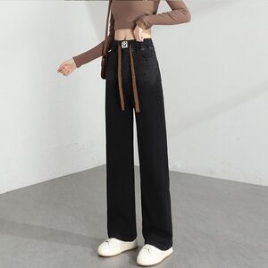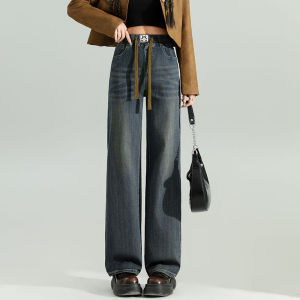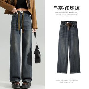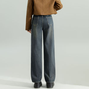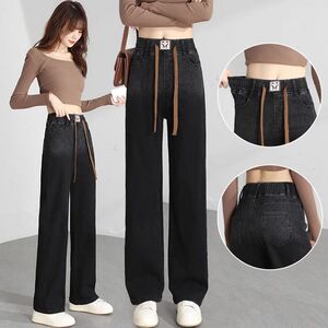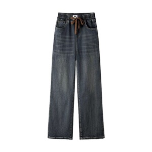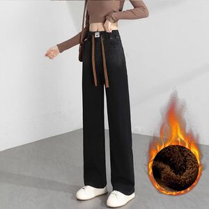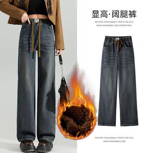 特厚羊羔绒松紧腰直筒牛仔裤女2025秋冬季加绒加厚高腰宽松裤子