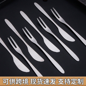 酒店不锈钢月饼刀叉套装二齿水果叉子甜品蛋糕叉礼品餐具中秋批发
