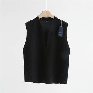 别具一格反骨缝合48支扬子纱精纺羊毛深V领宽松针织马甲背心A9088