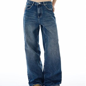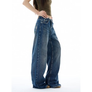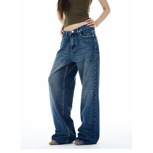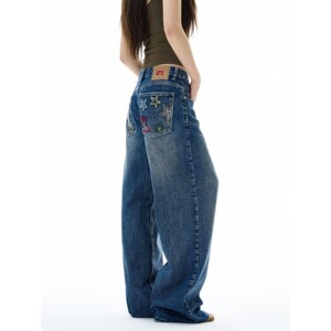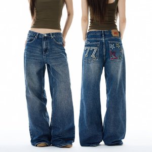美式高街宽松阔腿牛仔裤男女设计感星星贴布直筒裤情侣