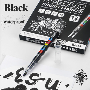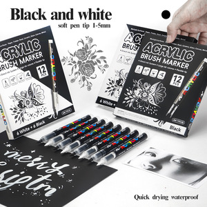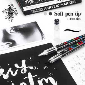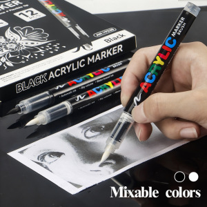 直液式美术高光笔软头丙烯马克笔手账绘画diy相册黑卡高光记号笔