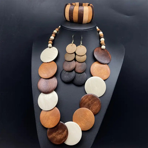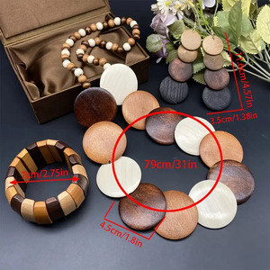 4件复古波西米亚风格手工制作木质串珠项链手链和耳钉套装首饰